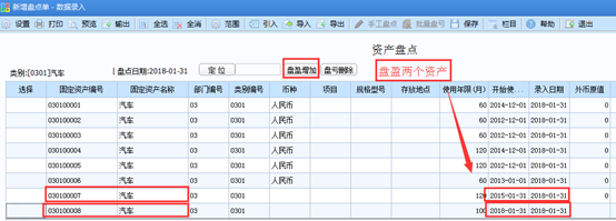 a.盘盈的资产可以点击盘盈增加,增加对应资产。