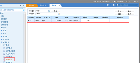 2. 资产盘亏-选择盘亏资产进行盘亏处理,对卡片做资产减少,需要制单