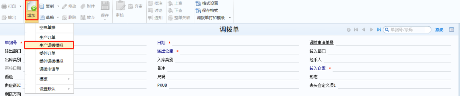 a)手工新增调拨单;b)参照调拨申请单,根据调拨申请单上的批复数量生成调拨单