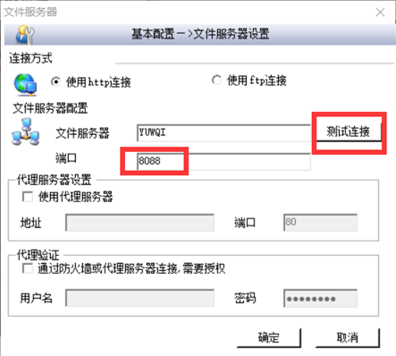 2. 文件服务器中,需要修改端口为更改后端口,点测试连接