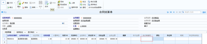 3, 当系统未启用合同执行单时,参照合同生成合同结算单,合同结算单生效也不会有合同执行单。