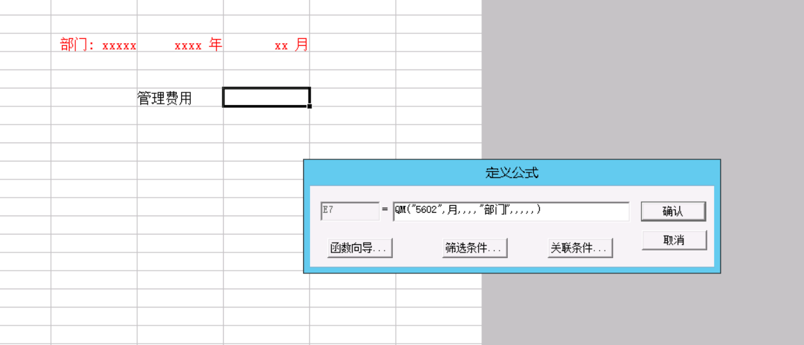 fx公式录入把部门作为关键字取数即可