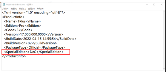 用记事本打开安装目录中ProductBuildInfo.xml文件