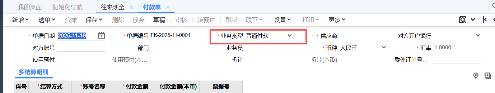 用友小张 问题: 收款单和付款单中也业务类型每次新增默认为普通收款或者普通付款怎么设置新增默认为直接付款或者直接收款? 解决: 单据格式设置中,把业务类型勾选记忆,然后做单选择直接付款后,下次新增,会默认记忆直接付款的业务类型