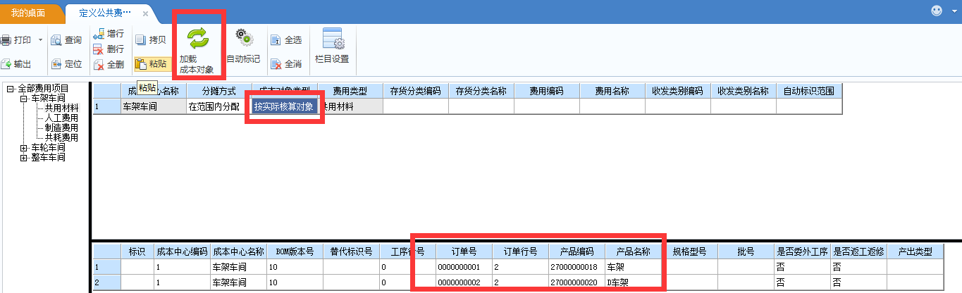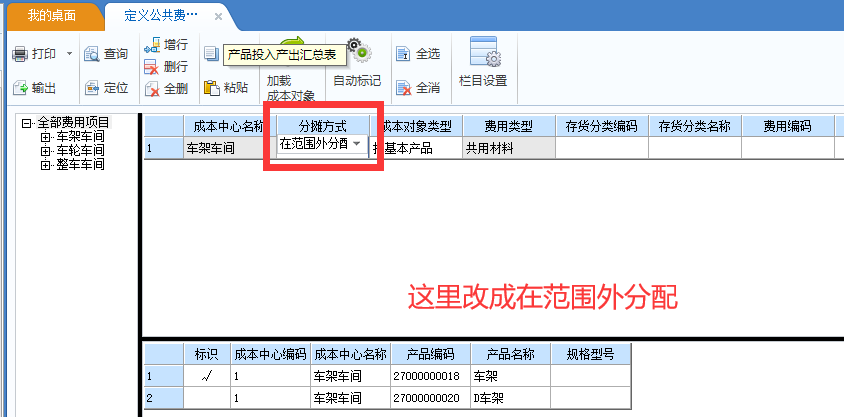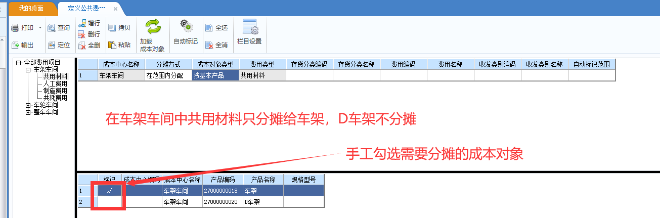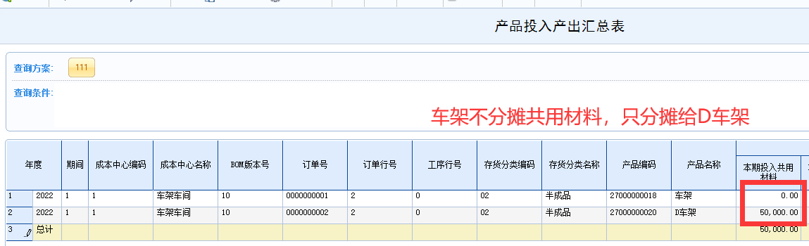 车架车间的共用材料不分摊给产品车架,分摊给之外的D车架。