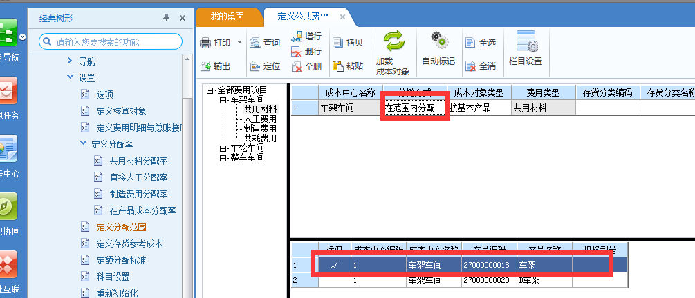 a) 在范围内分摊:只分摊给勾选了的成本对象
