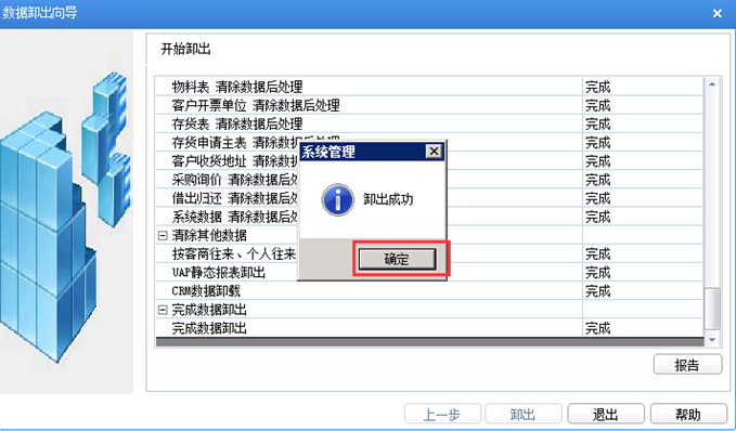 以上完成后,点击“卸出”即可正式进入卸出过程中,待提示“卸出成功”即可完成。