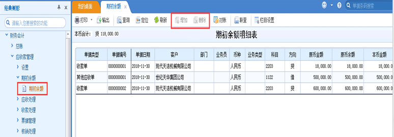 √应收款管理:期初余额界面,增加删除按钮置灰,无法调整。