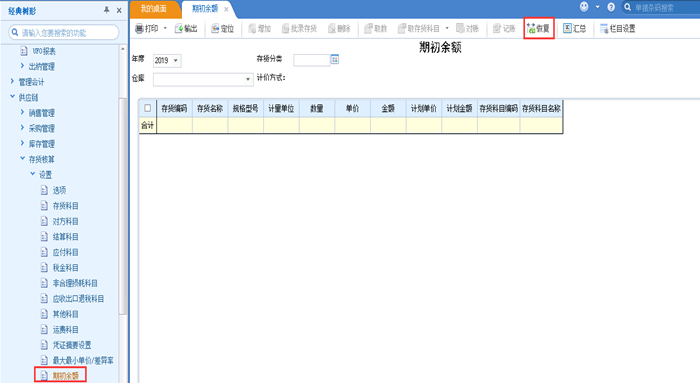 √库存管理:新年度库存管理的设置下没期初结存节点