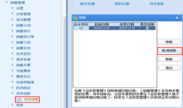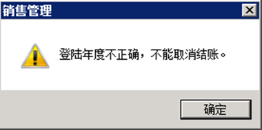 3)销售模块,如:数据卸出前,19年1月份结账了,数据卸出后,用18年12月31日登录软件,取消结账提示如下:登录年度不正确,不能取消结账。