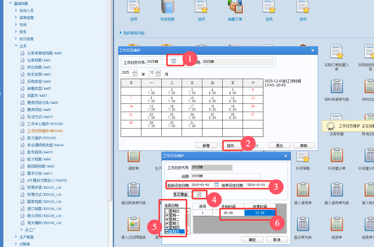 注意事项:若系统中存在多个工作日历代号,需针对每个代号分别执行以上操作,确保所有代号的配置均已更新。
