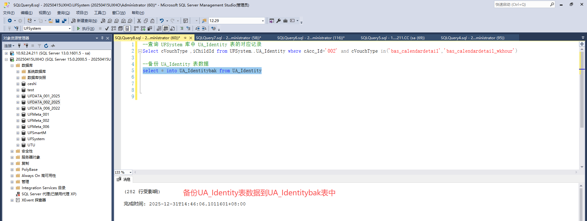 (创建备份表 UA_Identitybak,防止更新操作出错后可恢复原始数据)。