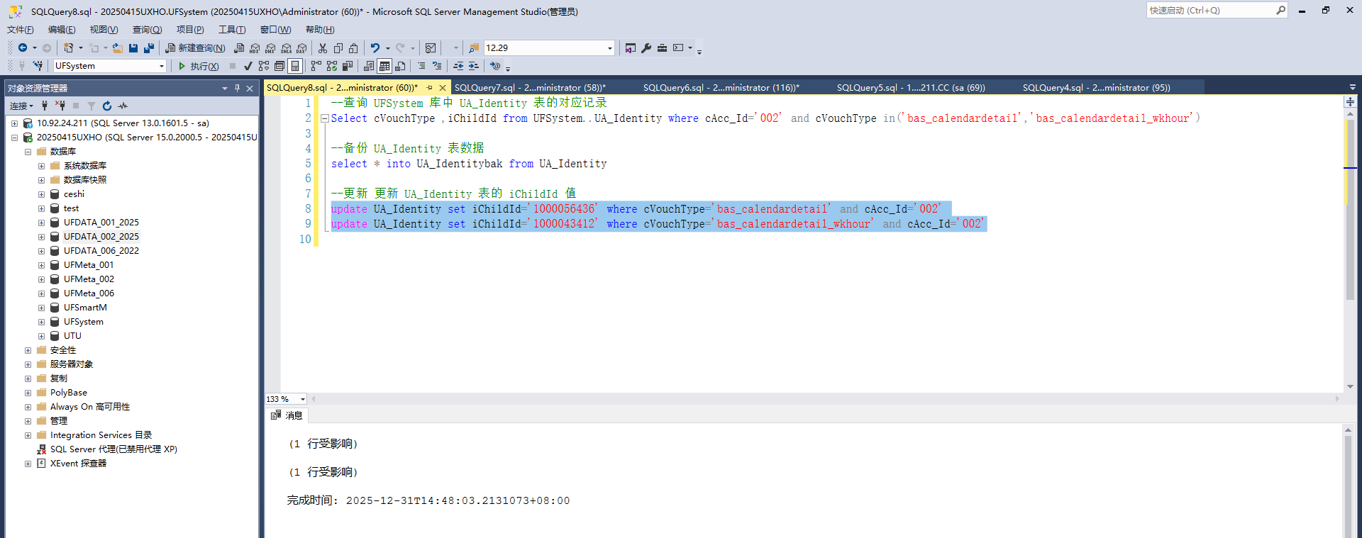 4、第四步:更新 UA_Identity 表的 iChildId 值
