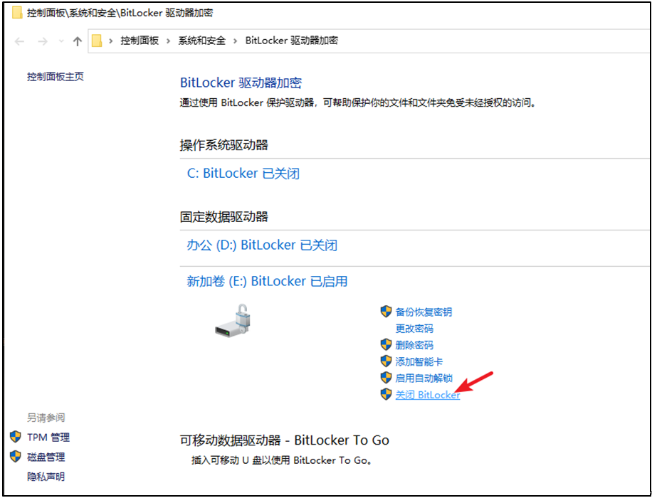 2.3在打开的界面中,选择关闭 BitLocker;