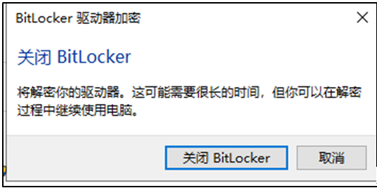 2.4 BitLocker 驱动器加密窗口,点击关闭 BitLocker,接着等解密完成即可;